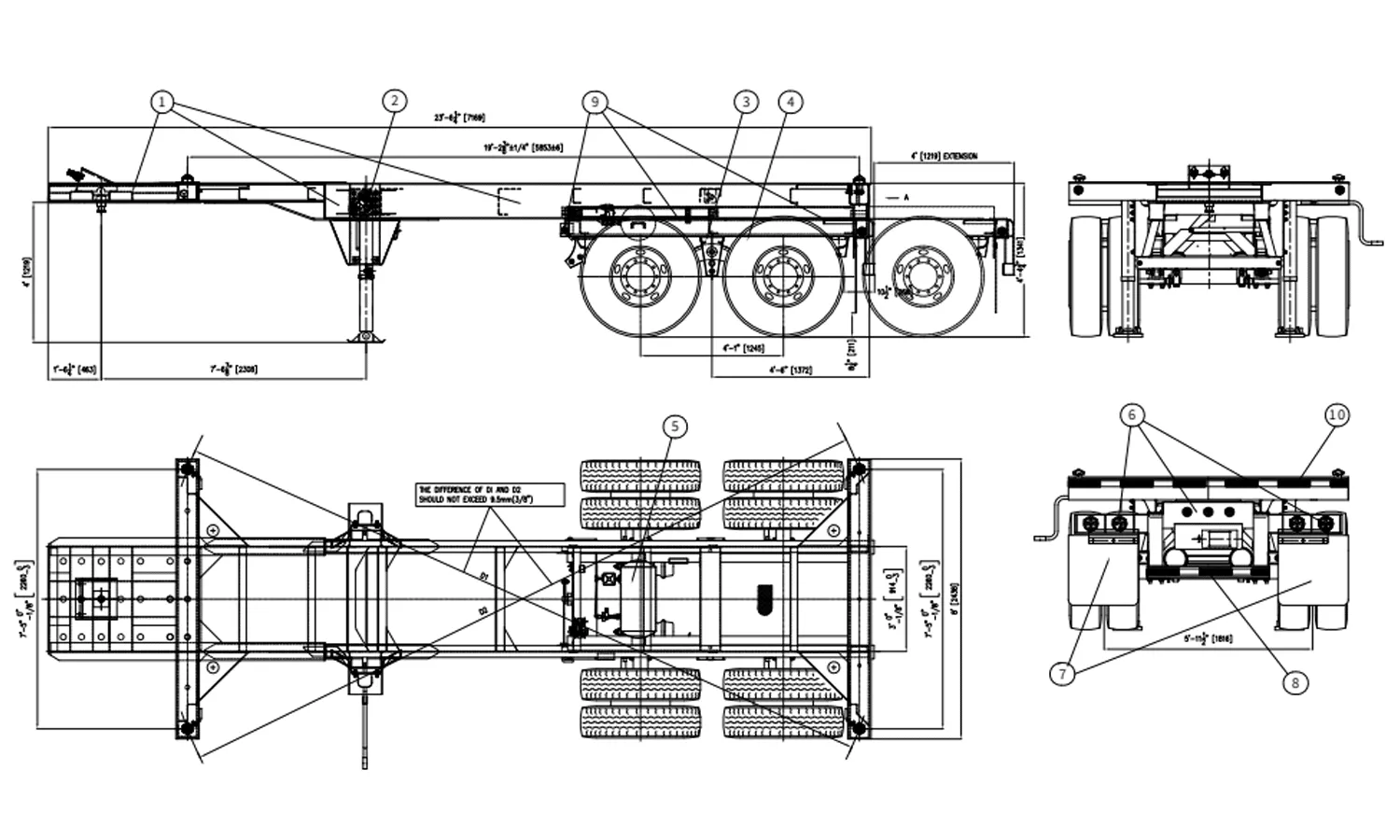 5" round axles with 22,500 lb capacity, 71-1/2" track, 16-1/2” x 7" Q Brake