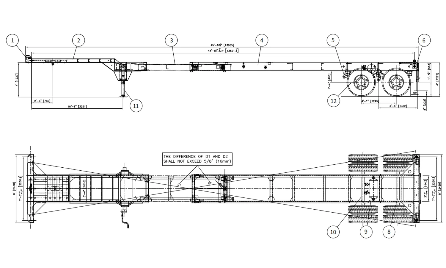 40' 8"(closed position, excluding rear bumper), 45' 8"(open position, excluding rear bumper)