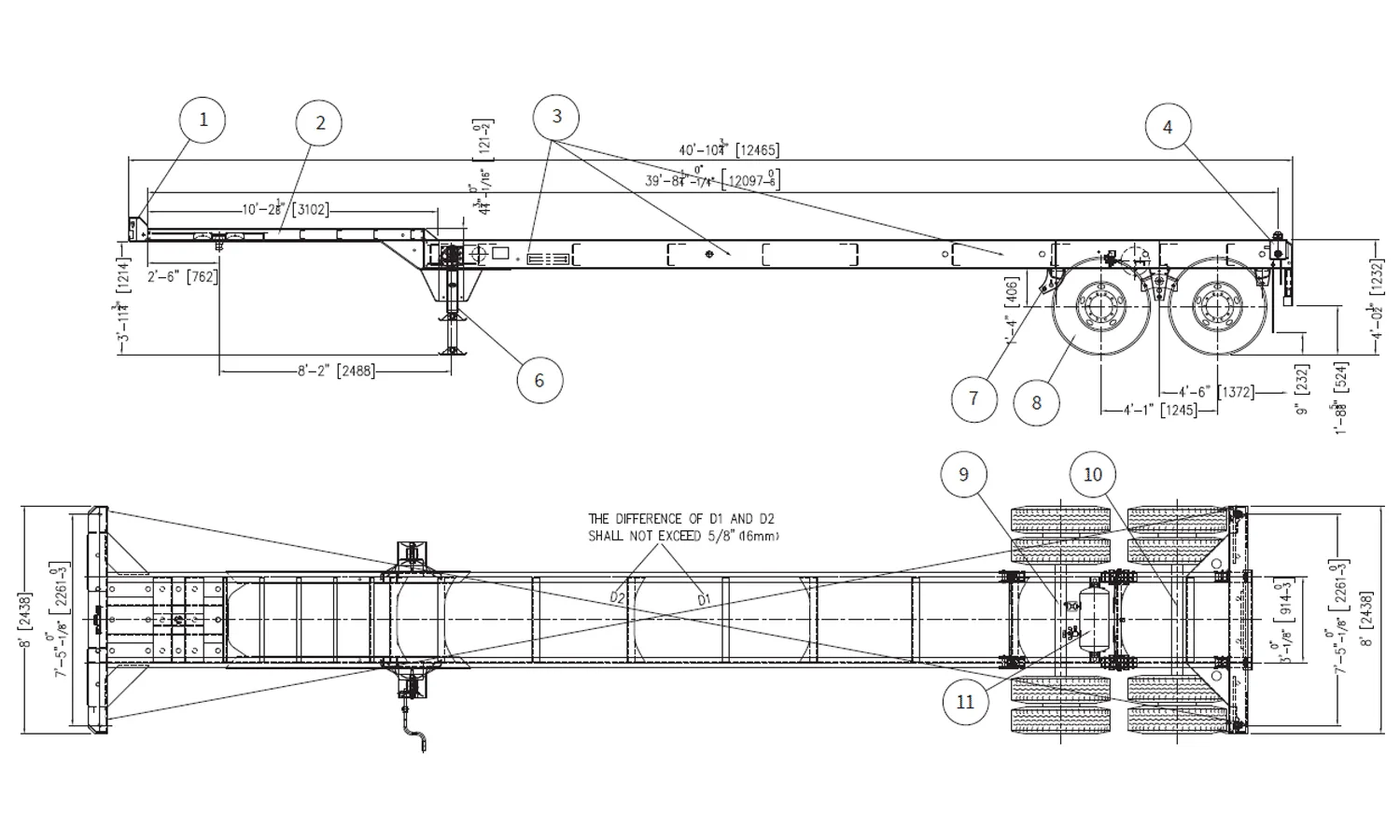 5" round axles with 22,500 lb capacity, 71-1/2" track, 16-1/2” x 7" Q Brake