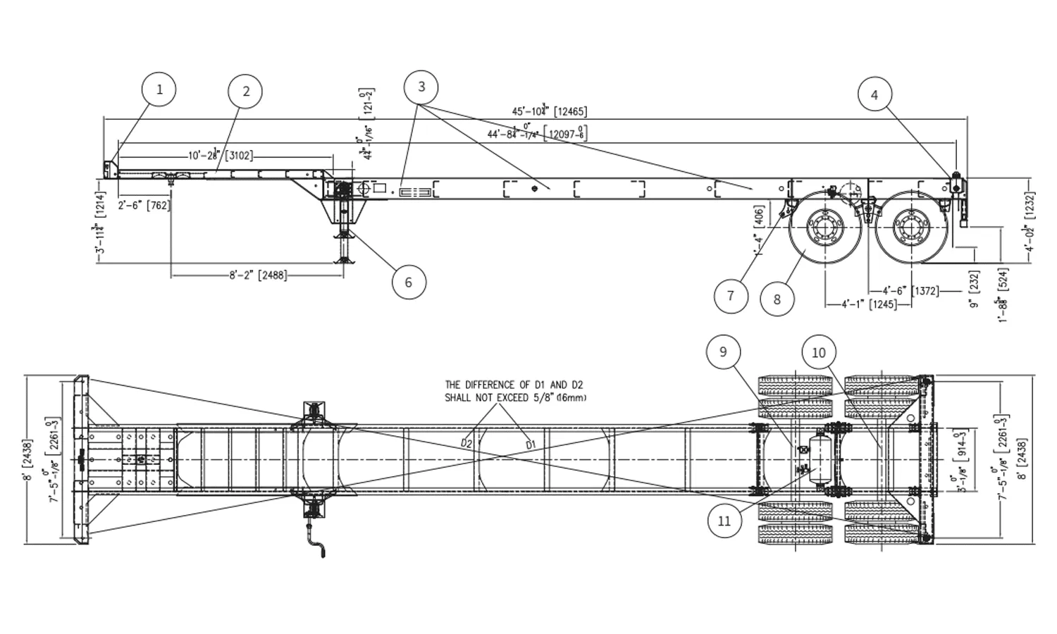 5" round axles with 22,500 lb capacity, 71-1/2" track, 16-1/2” x 7" Q Brake